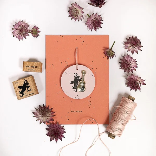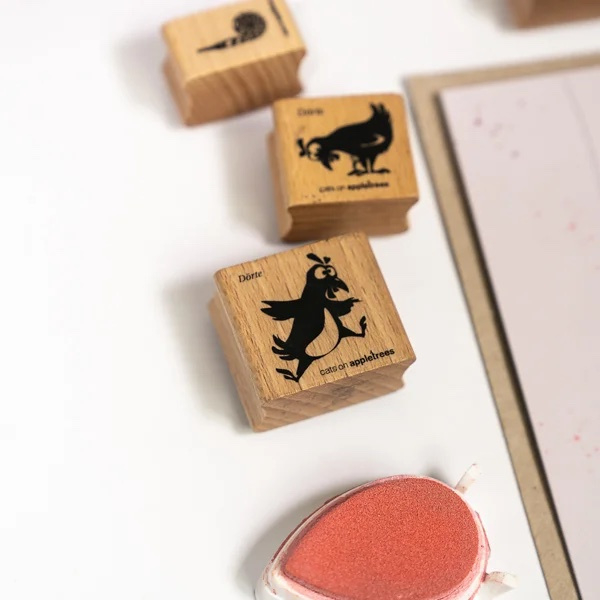 Cats on Appletrees stempel van een springende Dörte de hen.