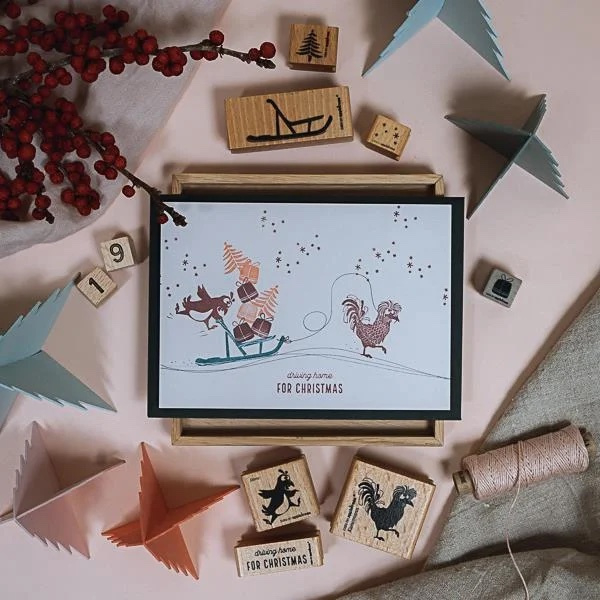 Afmetingen stempel: 2,3 x 2,9 cmAfmetingen houten blok: 3,0 x 3,0 cm