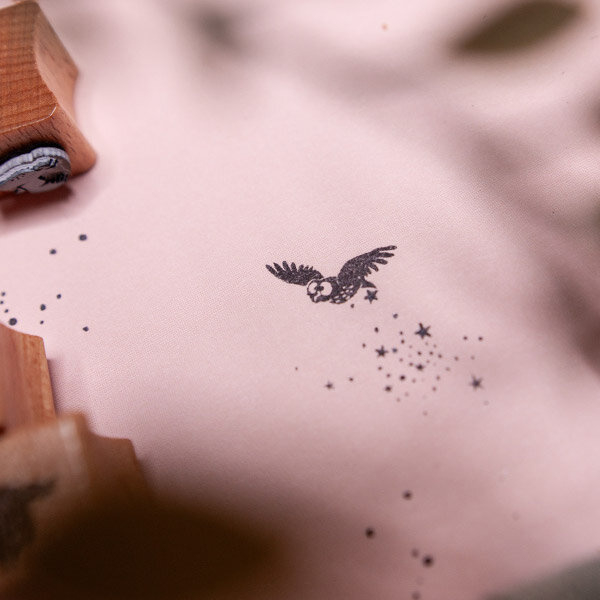 Cats on Appletrees stempel van Orpheus de vliegende bosuil.