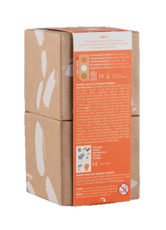 De schmink is dankzij de gecertificeerde biologische ingrediënten (met uitzondering van de tatoeages) zacht voor de kinderhuid en het mileu. De producten zijn vegan en dermatologisch getest.