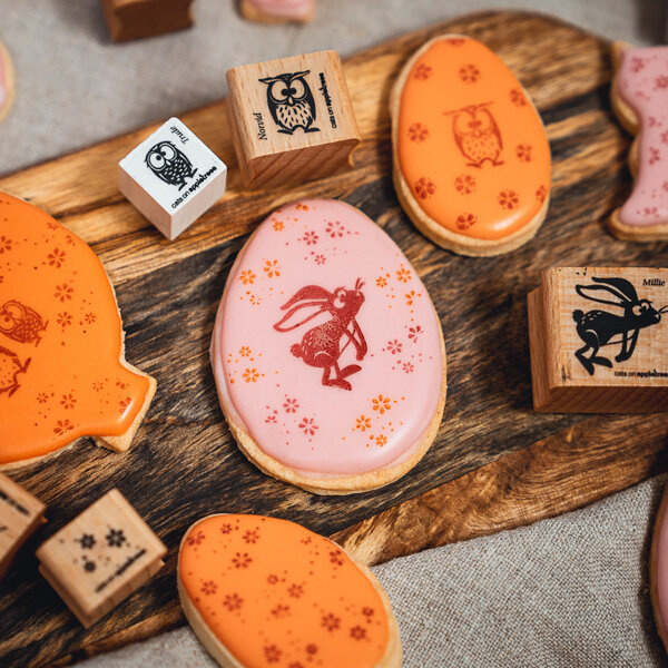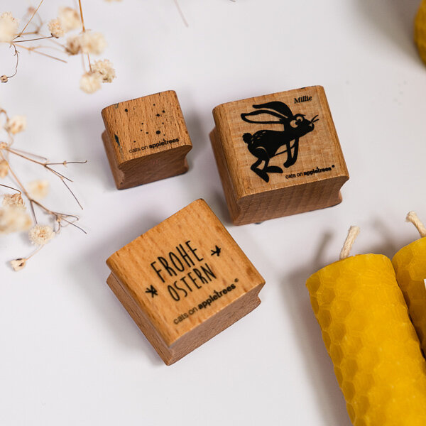 Cats on Appletrees stempel van Millie de springende haas.