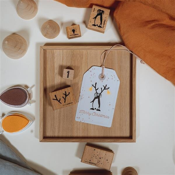 Afmeting stempel: 2,7 x 1,7 cmAfmetingen houten blok: 3,0 x 2,5 cm