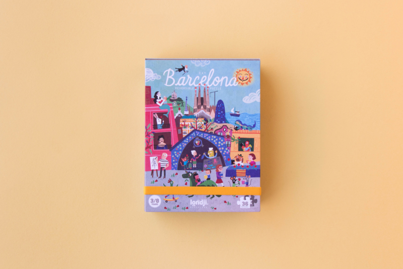 Wandel door Barcelona en ontdek wat deze prachtige Catalaanse stad te bieden heeft met deze omkeerbare Night and Day in Barcelona-puzzel van Londji.