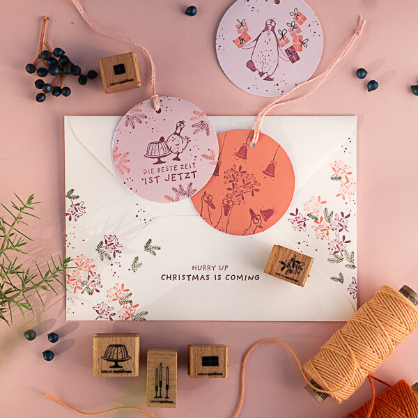 Cats on Appletrees mini stempel van een cadeau.Afmeting stempel: 0,9 x 0,6 cmAfmetingen houten blok: 1,6 x 1,6 cm