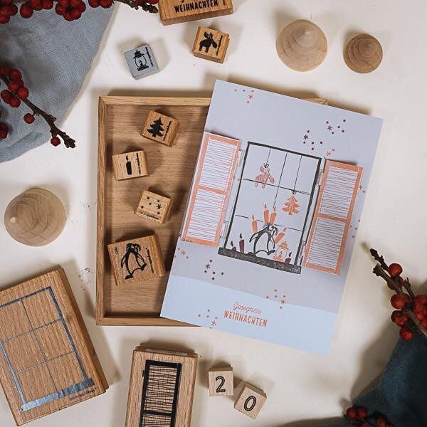 Cats on Appletrees mini stempel van een hanger in de vorm van een eland.Afmeting stempel: 1,2 x 1,4 cmAfmetingen houten blok: 1,5 x 1,5 cm