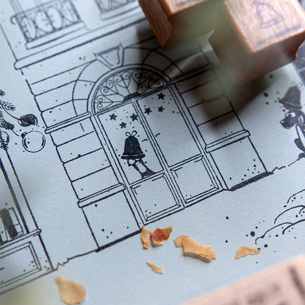 Cats on Appletrees mini stempel van een kerstbel.Afmeting stempel: 0,9 x 1,0 cmAfmetingen houten blok: 1,6 x 1,6 cm
