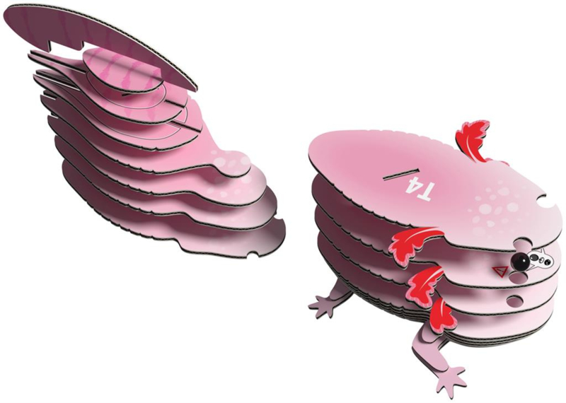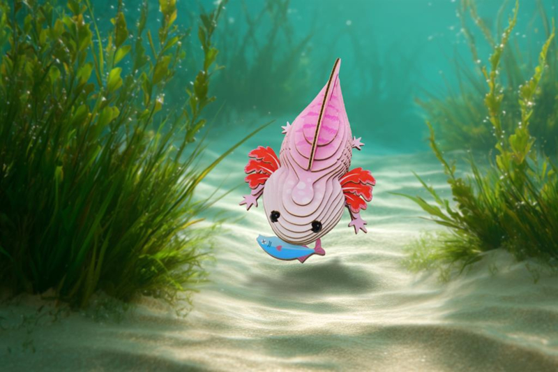 Met Eugy kun je stap voor stap je eigen gedetailleerde, kleurrijke mini-versie van de axolotl in elkaar zetten.