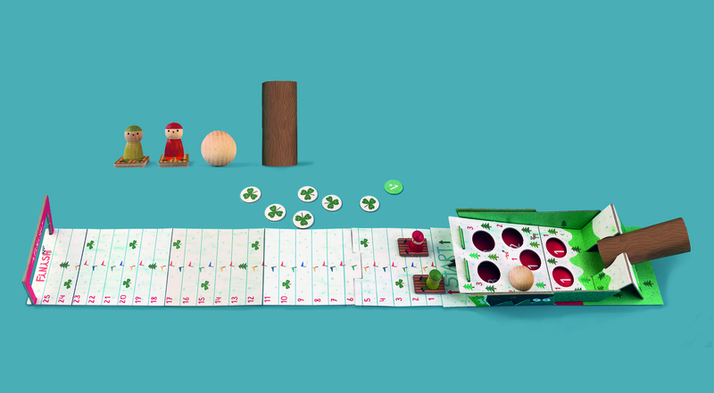 Jeee, het heeft gesneeuwd. Pak je slee uit, spring erop en glijd de helling af. Gooi de bolvormige dobbelsteen, verplaats je pionnen en voer de Klaveracties uit. Wie het snelst de finish bereikt, wint de race!
