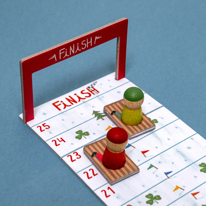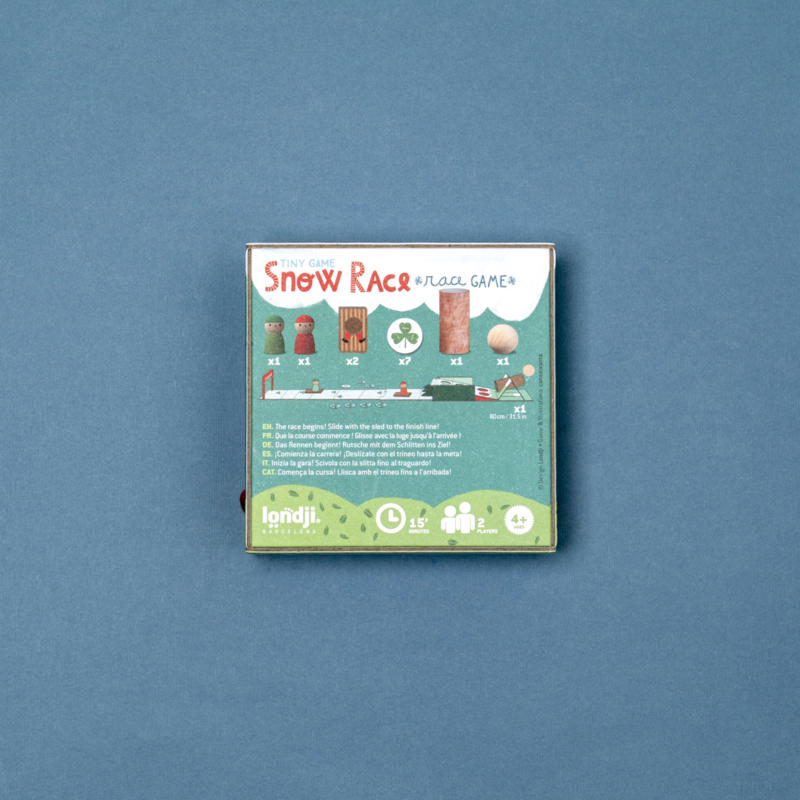 Snowrace is een duurzaam racespel van Londji dat je gemakkelijk meeneemt als je gaat logeren, op bezoek of op vakantie gaat. Wie als eerste de finish bereikt, wint!