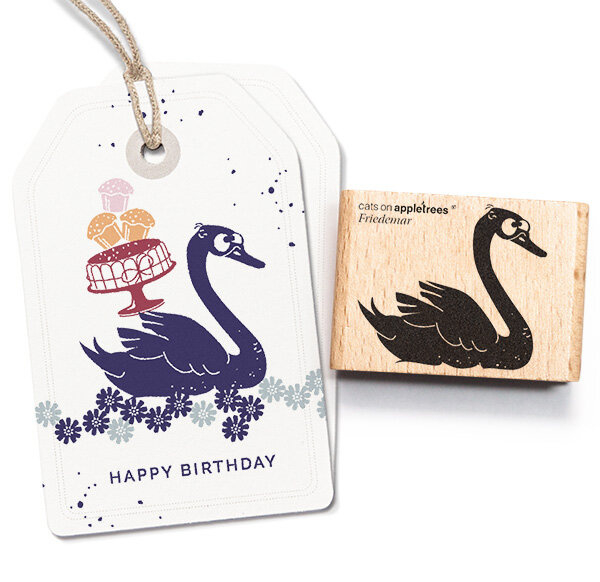Cats on Appletrees stempel van Odelia de zwaan. Afmeting stempel: 3,3 x 3,6 cm Afmetingen houten blok: 3,5 x 4,5 cm