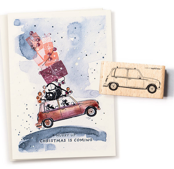 Cats on Appletrees stempel van een auto. Afmeting stempel: 2,9 x 6,8 cm Afmetingen houten blok: 3,5 x 7,0 cm
