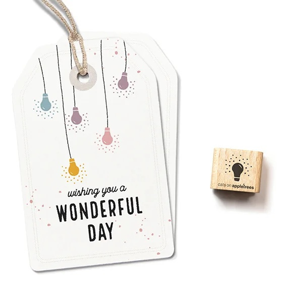 Cats on Appletrees mini stempel van een lampje. Afmeting stempel: 1,0 x 1,0 cm Afmetingen houten blok: 1,5 x 1,5 cm